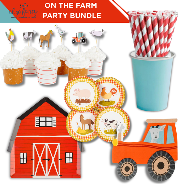 Celebrate your little farmer in the sweetest way with our On the Farm Party Bundle featuring a full coordinating cupcake kit. This curated set brings together cheerful farm animals, classic red barn details, gingham accents, and playful tractor touches to make party styling simple and stress-free.