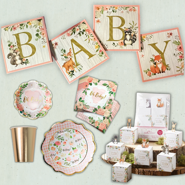 It’s a girl! Celebrate her arrival with our Woodland Bunny Baby Shower Bundle — a feminine twist on the popular woodland baby theme. Featuring soft florals, gold foil accents, and adorable woodland friends, this complete set makes hosting easy, elegant, and oh so fancy.